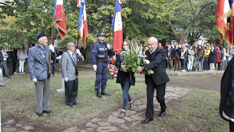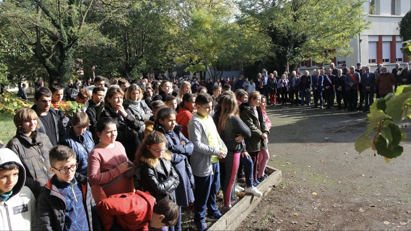 Pierre Fournier officiait la cérémonie. Il a formulé le vœu d’un monde en paix pour les générations futures avant de donner la parole à ses élèves : « Aujourd’hui, je souhaite donner un visage aux hommes dont le nom est inscrit ici sur la stèle du Lycée. Chaque élève présent autour de moi va faire une restitution de la biographie de chacun d’entre eux ».