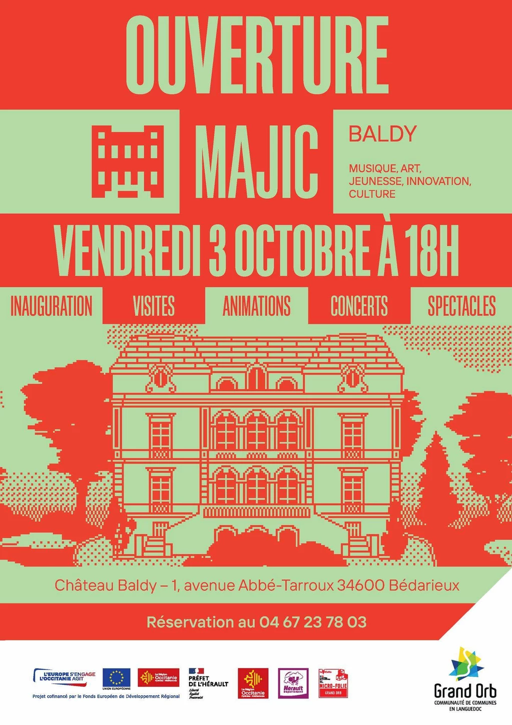La communauté de communes Grand Orb inaugure son nouvel Espace Culture et Jeunesse MAJIC, au Château Baldy à Bédarieux, le vendredi 3 octobre 2025 à 18h. Ce lieu entièrement dédié à la culture et à la jeunesse offrira aux habitants un espace moderne et interconnecté pour découvrir, apprendre et créer.