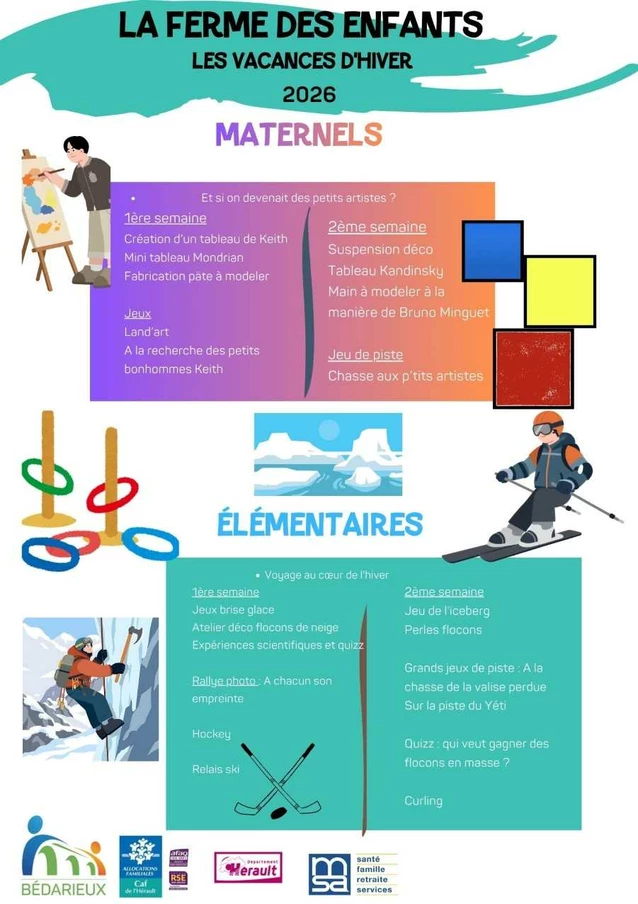 Le centre de loisirs La Ferme des Enfants ouvre ses portes pour les vacances d’hiver avec un programme riche en créativité et en aventures. Les équipes d’animation ont préparé deux semaines thématiques adaptées à chaque tranche d’âge, entre expression artistique et exploration glacée.