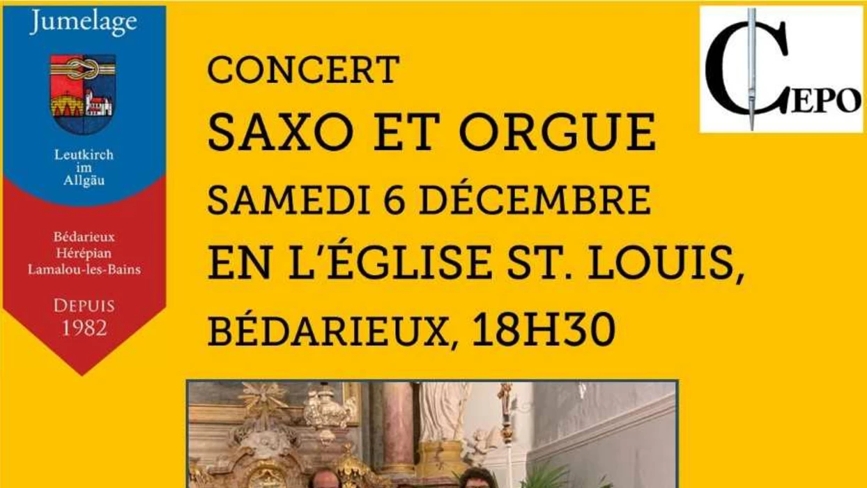 Le comite de jumelage Leutkirch avec le soutien du CEPO, organisent un concert saxo et orgue le samedi 6 décembre 2025 à 18h30 , ...
