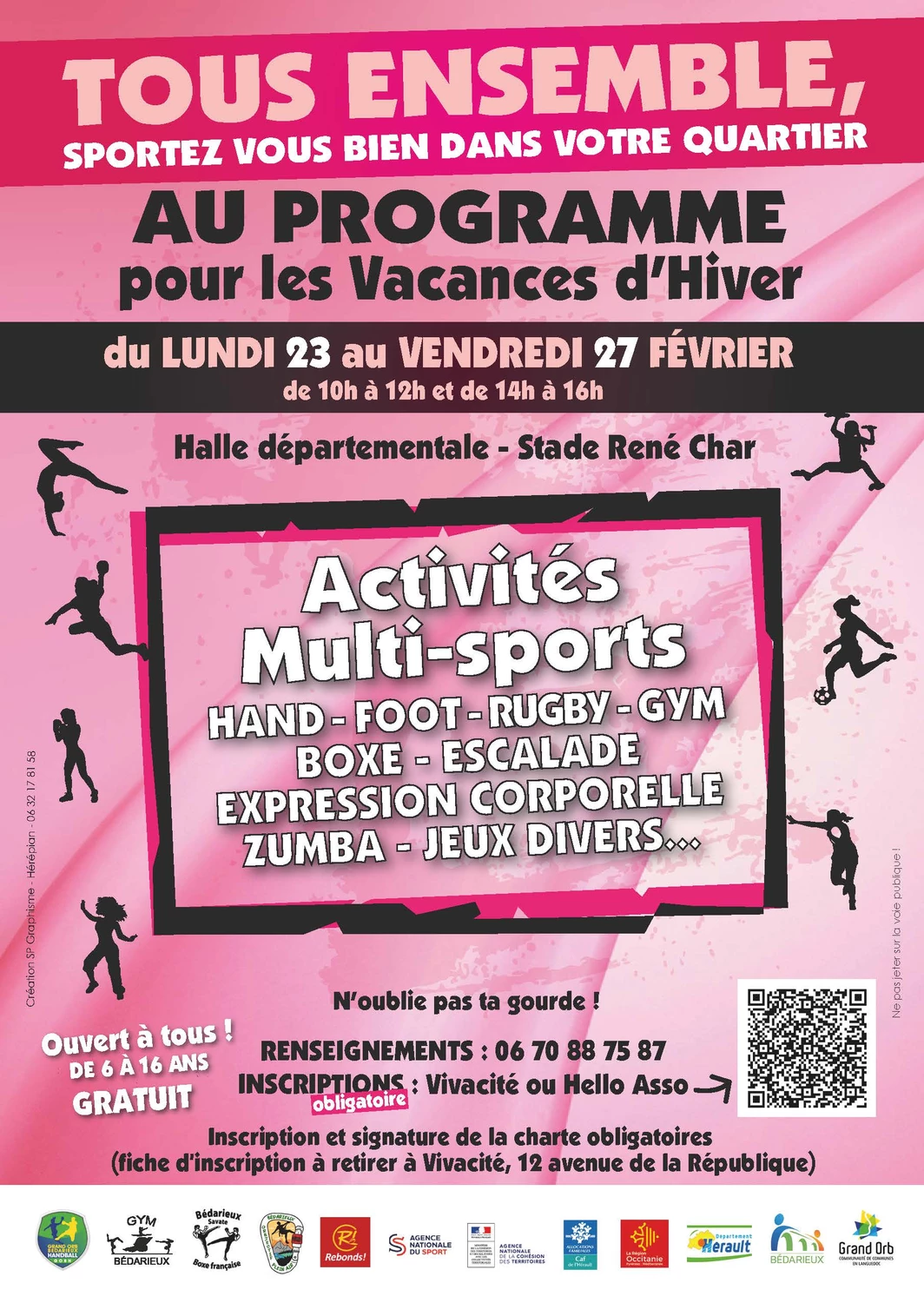 Dans le cadre du projet du contrat de ville « Allez les filles, sportez-vous bien dans votre quartier » , Grand Orb Bédarieux Handball, en partenariat avec plusieurs associations, organisent des différentes animations pendant les vacances d'hiver, du 23 au 27 février.