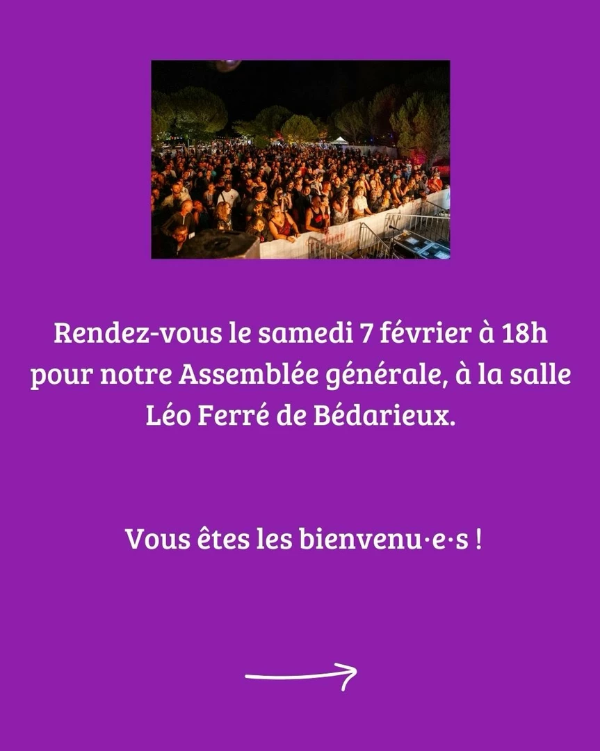 L'association MV Productions vous convie à son assemblée générale le samedi 7 février 2026 à partir de 18h à la salle Léo Ferré. Au programme : p résentation du bilan moral et financier des activités réalisées 2025, Présentation des projets pour 2026, Renouvellement du Conseil d'Administration Collégial.