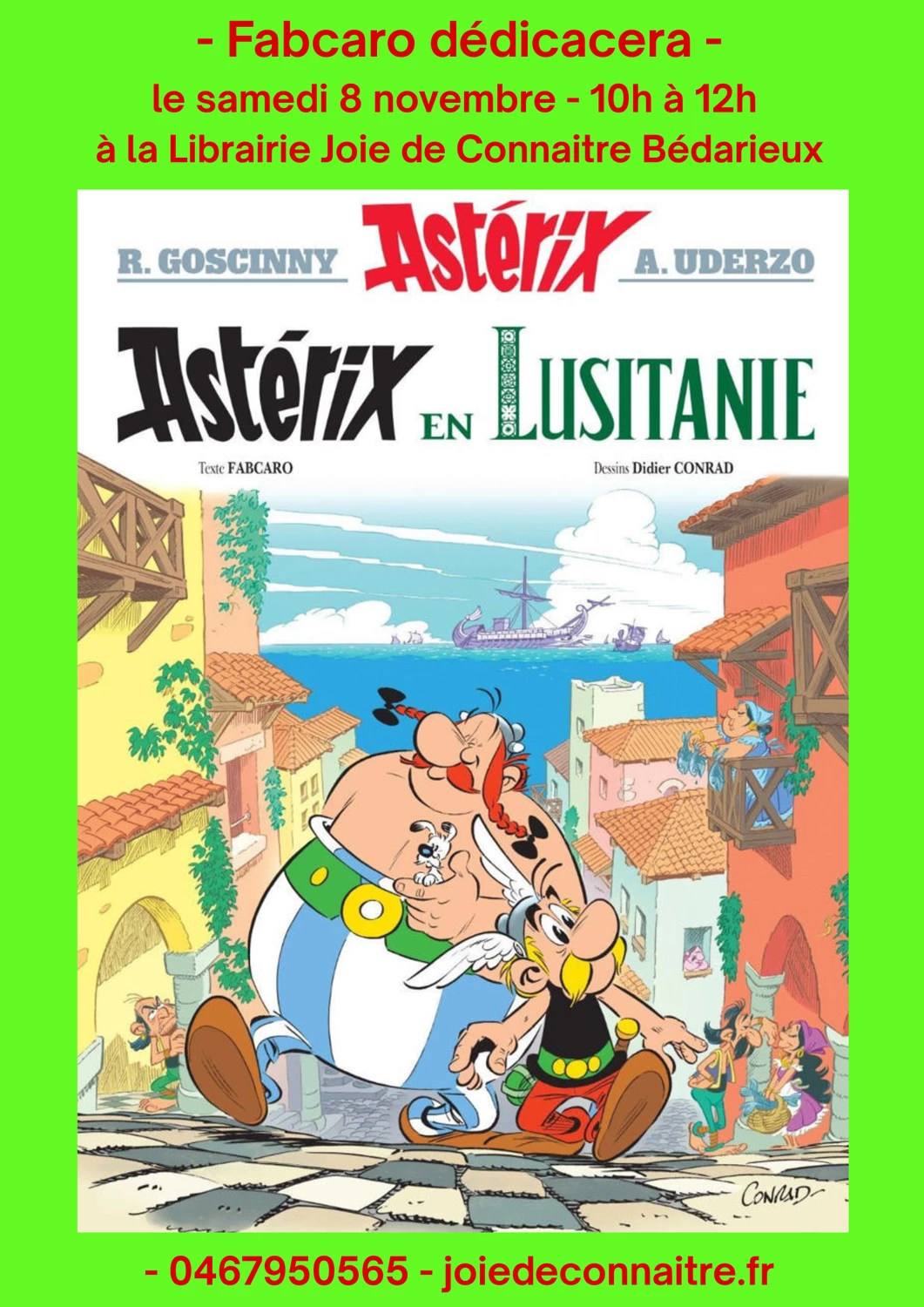 Abonnez-vous à la newsletter !A l'occasion de la sortie du dernier Astérix, la librairie Joie de Connaitre organise un séance de dédicaces avec Fabcaro, le samedi 8 novembre 2025 de 10h à 12h . Un moment propice aux échanges avec l'auteur bédaricien dans une ambiance conviviale.