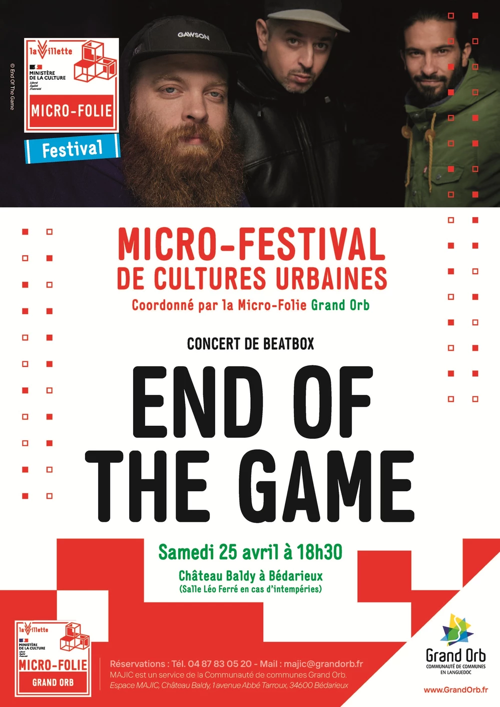 L’Espace culturel MAJIC accueille End Of The Game pour un concert de beatbox, le samedi 25 avril 2026 à 18h30.