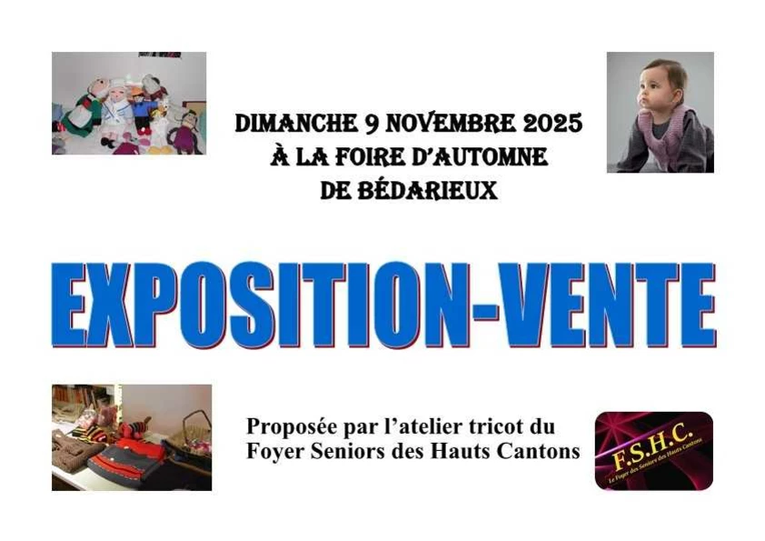 L'atelier tricot du Foyer Seniors des Hauts Cantons vous propose une exposition le dimanche 9 novembre 2025 lors de la foire d'automne. L'occasion de se procurer des créations faites à la main pour la saison hivernale.