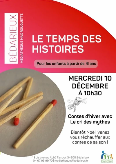 La médiathèque Max Rouquette vous invite à découvrir des contes d'hiver avec Le Cri des Mythes le mercredi 10 décembre 2025 à 10h30 .