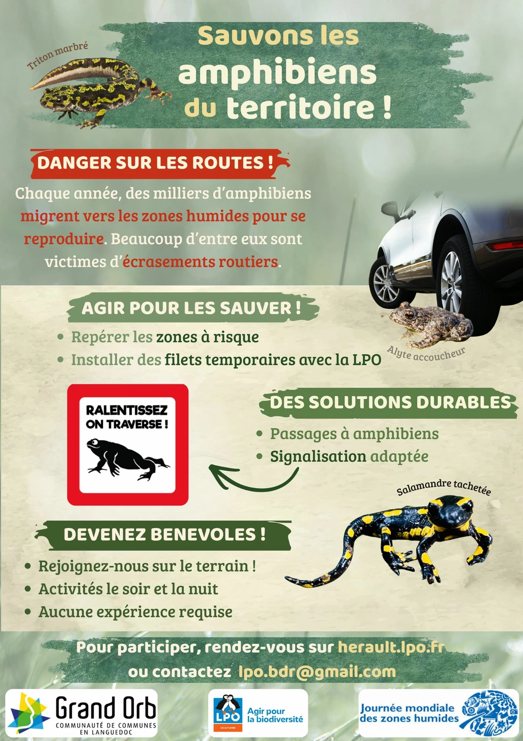 La LPO tiendra un stand de sensibilisation ouvert à tous le dimanche 22 février 2026 de 10h30 à 12h30 au jardin des plantes Frédéric Jacques Temple ( à côté de l'hôpital). Une belle occasion d'échanger autour des amphibiens du territoire, des enjeux de leur préservation, et du projet "Sauvons les amphibiens de notre territoire", soutenu par Grand Orb.