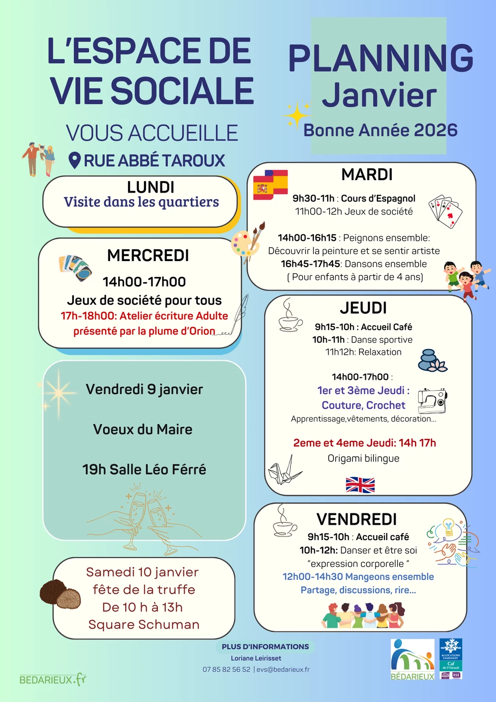L'espace de vie sociale vous dévoile son nouveau programme pour le mois de janvier 2026.