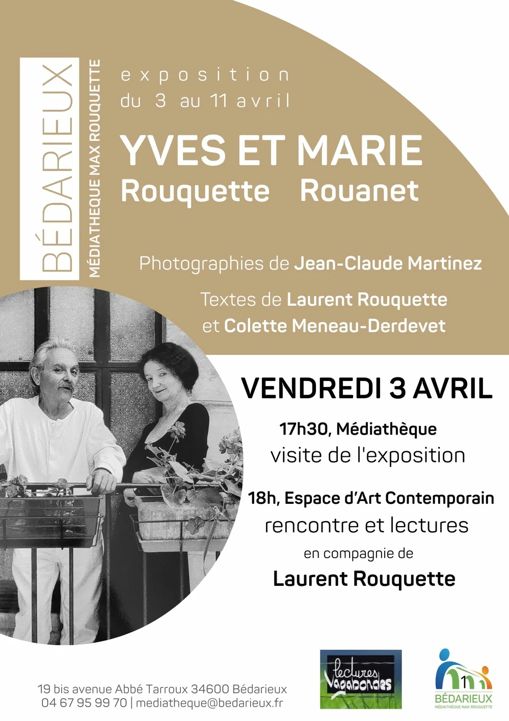La médiathèque Max Rouquette organise une rencontre-lecture en partenariat avec Lectures Vagabondes, le vendredi 3 avril 2026 à 18h à l'Espace d'Art Contemporain, en mémoire de la vie et de l'œuvre de deux grandes figures de la culture et des lettres occitanes Marie Rouanet et Yves Rouquette .