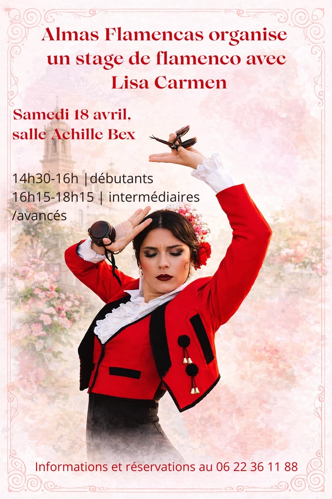 Abonnez-vous à la newsletter !L'association Almas Flamencas organise un stage de flamenco avec Lisa Carmen le samedi 18 avril 2026 à la salle Achille Bex.
