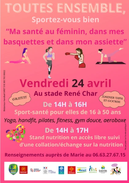 Le vendredi 24 avril 2026 , rendez-vous au stade René Char pour un après-midi d’activités réservées aux femmes de 16 à 50 ans, de 14h à 16h.